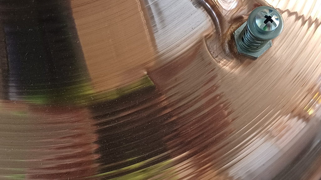 Az üst oldalán és a kupola biztonsági szelepénél 10 forintos nagyságú benyomódások találhatók.